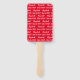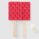 El ventilador de la mano es rojo intenso. Tiene un patrón de texto para el nombre del graduado y la Clase de 2024. El nombre (Mostrado: Elizabeth) aparece en un elegante guión en blanco. El otro texto también es blanco. Todo el texto se puede editar.