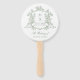 Elegant sage green floral crest wedding ceremony timeline hand fan with monograms, perfect for a modern classic or romantic vintage wedding.  For more advanced customization of this design, Please click the "Customize further" link.  Matching items are also available. ***Purchase pre-assembled for an upcharge***