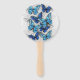 Composición vertical de mariposas morfo realistas, azules y blancas sobre fondo texturado gris. Mariposa morfo azul.