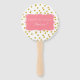 Confeti de oro metálico con abanico de la mano de la fiesta de cumpleaños rosa. El diseño presenta un patrón metálico de oro sobre confeti blanco y una forma rosada en el medio con el texto personalizado.