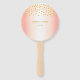 Elegante confeti metálico dorado sobre el ventilador de mano de oro rosa. Texto listo para ser personalizado.