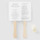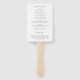 Elegante fan de la mano del programa de boda con un diseño sencillo con sus nombres en un moderno tipo de letra sans serif y los detalles restantes en los tradicionales tipos de letra serif y elegantes.