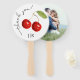 Este fanático de la mano de la foto tiene dos lados - en el frente tiene dos cerezas rojas bonitos en un fondo blanco, un mensaje de agradecimiento y un elegante monograma de personalizable con las iniciales de la novia y el novio. En la parte de atrás hay una foto de personalizable, que se puede reemplazar con la suya. Perfecto para los encantos de un boda rústico en una pradera verde.