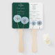 Cree un ventilador de programa de boda personalizado para su día especial. Este programa de estilo de ventilador incluye fotos de dientes de león o relojes de león. La parte delantera del programa es verde cazador, mientras que la inversa es blanca con impresión verde oscuro.