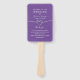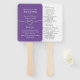 Abanicos de mano modernos, minimalistas, elegantes, con caligrafía simple morada para programa de boda con corazón de cuerda plateada.