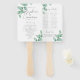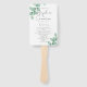 Simple, moderno, minimalista con fuente de firma de guión de moda programa de boda impreso en un abanico con un borde de vegetación de eucalipto acuarela, orden de la ceremonia, nombres de la fiesta de boda, y mensaje de agradecimiento en el reverso. El color de fondo blanco se puede cambiar para que coincida con el esquema de color de su boda.