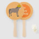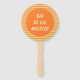 Este impresionante ventilador de mano tiene un burro marrón pálido con una manga y cola marrones oscuros. El burro está listo para celebrar el Día de los Muertos, el Día de los Muertos. El burro lleva un sombrero mexicano cubierto de estrellas rojas y verdes, zanahorias, remolinos coloridos, cerezas y chiles rojos y verdes. Hay una flor con pétalos naranjas y un centro amarillo en medio del gorra, llamado Tithonia, o girasol mexicano.