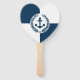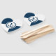 Diseño de temática náutica con decoración de coronas de ancla y laurel sobre fondo geométrico azul y blanco