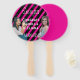 Cool off while celebrating graduates with a vibrant, fun, celebratory, photo, graduation sign, hand fan. The hand consists of a bright striped pattern, for the background, photos with the background removed, and custom text in the center to offer congratulations. If needed, use Zazzle's BG Remover, your smart phone, or a photo editor to remove the background.