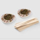 Un diseño de ensueño con adornos dorados y marrones que incluyen una red de vida redonda de bambú con plumas de tonos marrones y cuentas rojas sobre un fondo de plumas suave para un boda.