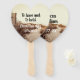 Fanáticos bodas en forma de corazón con una imagen de dunas de mar para los clientes en una ceremonia a orillas del mar. Un lado del ventilador contiene plantillas de texto para los nombres de la pareja con fecha de boda, y el otro lado tiene el dicho, "Tener y mantener desde este día adelante". Los aficionados son una forma doble de ayudar a mantener el frescor de los huéspedes y hacer bromas de diversión desde el día.