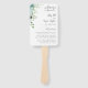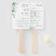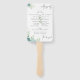Fanáticos de mano del programa de boda con floral azul polvoriento, letra de texto minimalista y caligrafía de texto.