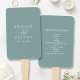 Mantén a tus invitados fresco e informado con este elegante y polvoriento fanático verde azulado del programa de boda. Con un diseño minimalista y una tipografía moderna, este ventilador de mano ofrece un toque sofisticado y práctico a su ceremonia boda. El suave color y el diseño limpio muestran los detalles del programa de boda en un formato elegante y fácil de leer. Perfecto para cualquier tema de boda, estos ventiladores le aseguran a sus huéspedes que se sientan cómodos mientras siguen sus eventos especiales.