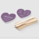 Un simple pero elegante fan del programa de boda en forma de corazón para un polvoriento color boda púrpura. Los títulos y nombres (y las iniciales) de la novia y el novio están escritos en un elegante guión caligráfico, el resto en mayúsculas. El fondo es morado polvoriento, el texto es blanco. En la parte trasera, tiene a la izquierda el programa de ceremonia de boda y, en el lado derecho, la fiesta de boda (con dos columnas diferentes para el equipo de novias y el equipo de novios). Y debajo de ellas un breve mensaje de agradecimiento.
