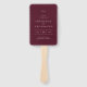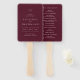 Classic style wedding program hand fan featuring a simple yet elegant design in a deep burgundy color that is perfect for a fall wedding or a winter / Christmas wedding.