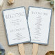 Introduce your wedding party in style with this classic blue fan program. This fan provides a beautifully organized space to list all the important people who stand by your side on your big day. The serene blue hue adds a touch of sophistication, while the clear layout ensures all names are easily readable. It’s a thoughtful way to honor your wedding party and provide your guests with a lovely keepsake.