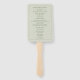 Abánicos de mano para programa de ceremonia de boda en un hermoso y elegante verde menta/salvia. Incluyen el programa de la ceremonia junto con los nombres de los padres de la novia y el novio, el oficiante, la fiesta nupcial y otros participantes. Contáctenos para obtener ayuda con la personalización o productos coincidentes.