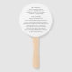 Elegante fan de la mano del programa de bodas con un diseño sencillo y clásico con tu monograma y los detalles de tu evento en una fuente serif tradicional.