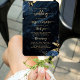 Este elegante aficionado al programa de bodas cuenta con ramos florales de color azul marino, adornados con una vegetación dorada falsa de Relieve metalizado en dos esquinas, sobre una imagen de fondo de un ágata color azul marino. El texto del personalizable combina fuentes seriif de color dorado y letra manuscrita. En el reverso se puede celebrar la boda con un fondo azul marino a juego.