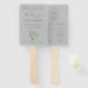 Un adorable fanático de la mano del programa de boda azul y gris, esta es una manera de incluir tu programa de boda en tu ceremonia, este fan de este boda cuenta con una plantilla fácil de usar para introducir información. Con un fondo azul y un texto gris, personaliza el tuyo hoy!