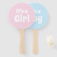 Es un Chica, es un niño con ducha de bebé revelar Hand Fan Baby Shower, Género revelar juego de adivinanzas fiestas, niño o chica? letras blancas con fondo rosa claro o azul claro. Aficionados de doble cara y reversibles para los clientes