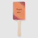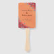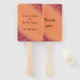 Bonito de flores de estrella plateadas sobre tallos marrones, sobre un fondo naranja mezclado y rojo, impreso en los abanicos de la mano personalizado. El diseño floral cubre las esquinas inferior izquierda y superior derecha. El naranja principal está en el centro, que se funde en las esquinas rojas bajo las estrellas de las dos esquinas mencionadas. La parte delantera del ventilador tiene un marcador de posición de plantilla para los nombres del novio y la novia. La parte trasera del ventilador dice: Gracias. Son una gran elección para los bodas. Gracias por comprar en CherylsArt en Zazzle.