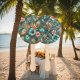 Los aficionados a la elegancia tropical, elegantemente diseñados, presentan un elegante estilo tropical, perfecto para añadir estilo y función a bodas en el jardín o en la playa, o cualquier evento de temática tropical. Estos ventiladores son ideales para mantener a los huéspedes al mismo tiempo que complementan su decoración boda con un toque de sofisticación y encanto. Hacen excelentes favores de boda o bonitos accesorios para una celebración memorable. Este diseño se crea mediante una imagen AI editada digitalmente.