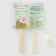 El ventilador de la mano boda inspirado en las vacaciones tropicales cuenta con una piña acuarela con hibisco y un pájaro de flores del paraíso sobre un fondo acuático. Los detalles de la ceremonia y la fiesta de bodas están en la parte trasera. Perfecto para bodas tropicales, de playa, hawaianos, luau, isleños y de verano. Material gráfico original KL Stock