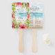El ventilador de la mano boda, de temática tropical de la playa, cuenta con un fondo de playa de color acuático abstracto con un marco de flores rosadas y de hibiscos de coral y hojas de palma. En el reverso se muestra la playa abstracta y se enumeran los detalles de la ceremonia y de la fiesta de boda, que se personalizan fácilmente reemplazando el texto de muestra por el suyo propio en los campos indicados. Perfecto para bodas tropicales, de destino, costeros, de verano, de playa y de la isla.