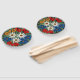 Una imagen de un patrón floral con un aspecto de costura de las flores blancas alpinas de Edelweiss de Europa en su producto. Azul, rojo, amarillo y blanco. Leontopodium alpinum de Suiza, Alemania y Austria.