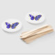 Joyería, azul, zafiro, mariposa floral brillante con ala decorada con flores azules y preciosas con hojas de oro sobre fondo blanco.