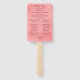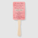 Aficionado al programa de bodas con tema de pergamino rosa, el fondo es un pergamino rosa con un gráfico floral rosa y verde en la parte delantera. La parte delantera del ventilador incluye el programa de bodas mientras que la parte posterior del ventilador tiene su fiesta de bodas listada. ¡Haga su pedido hoy mismo!