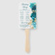Bienvenidos a los invitados a su ceremonia de boda con este elegante y funcional abanico de programa de boda. Con hermosas flores teal combinadas con acentos dorados suaves, este diseño combina la elegancia y la practicidad, manteniendo a los invitados frescos mientras los guía a través del horario de su ceremonia. Perfecto para bodas al aire libre o de verano, ceremonias en el jardín o para cualquiera que busque un diseño moderno y chic con un toque de naturaleza. Personalice los detalles para que coincidan con su boda y regale a los invitados un hermoso recuerdo.