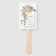 Flores de acuarela de coral de melocotón, arco y monograma de programa de abanico de mano de boda de primavera. Este hermoso diseño de boda cuenta con un marco de arco con flores de cactus de coral de melocotón y hojas en la esquina izquierda y su monograma. Los nombres están en tipografía de letra cursiva.