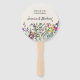 Flor silvestre color agua colorida / sobre crema de marfil y ventilador de mano boda violeta botánico al aire libre para ayudar a su estancia a refrescarse. Personalizado con un "agradecimiento por venir" de la novia y el novio.