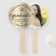 Manténgase fresco mientras apoya a su graduado favorito mientras recibe su diploma, con este abanico de mano conmemorativo. En la parte delantera, un divertido y juguetón visual de escritura a mano en negro, corazones lindos y juguetones, y un icono de gorra de graduación superpuesto en un fondo de falso foil dorado. La parte trasera muestra una foto de su elección. En la parte delantera, personalice el texto personalizado con el nombre de su graduado, el nombre de la escuela y el año de graduación. Elija una foto favorita de su graduado para la parte trasera. También están disponibles invitaciones, tarjetas de agradecimiento, adornos para gorras, servilletas, platos y otros regalos de graduación en esta colección moderna y elegante. ¡Garantizado para preservar los recuerdos queridos de su ocasión especial!