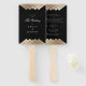 Revive la tendencia del Gran Gatsby con este maravilloso ventilador de la mano de boda de temática bohemia que incluye detalles de la ceremonia y da la bienvenida a sus invitados. Boda De Boho De Estilo Vintage. Un diseño formal y elegante para su boda de aficionado a la mano para un boda inspirado en boho. Deco geométrico antiguo Gran Gatsby - Diseño asombroso con líneas art deco en el estilo Gran Gatsby. Muy de moda, moderna y llena de energía rodean tu ventilador. Este ventilador de mano complementa la suite Boda o forma parte independiente de cualquier función boda. Relieve metalizado dorado en la parte trasera y delantera del ventilador de la mano con detalles muy detallados. Bodas honestos y formales. Avant-Garde.