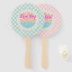 Gender Reveal Two-Sided Blue & Pink Gingham Plaid Checkered Hand Fan. Custom Party Supply. It´s a Boy - It´s a Girl.