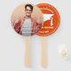 Tu foto favorita, las palabras Nuestro graduado, tu nombre en la parte delantera y gorra de graduación y más información sobre el fondo del naranja en la parte posterior. Estos fanáticos son una manera divertida de mantenerse frescos en el día de graduación. Artículos coincidentes en nuestra tienda.