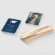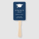 Fanático moderno de la mano de la graduación con un diseño simple y masculino con "Grado de felicitaciones" en una tipografía en negrita grande junto con una gorra de grado, el nombre del graduado, año y nombre escolar en blanco sobre un fondo azul marino. El color de fondo puede cambiarse para que coincida con el color de la escuela. El trasero tiene tu foto favorita. Estos fans de mano son perfectos para un graduado y una gran manera de agregar un toque personal a tu fiesta de graduación.