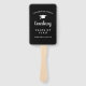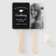 Fanáticos modernos de la mano de la graduación mostrando "Felicitaciones" y una gorra de grado por encima del nombre del graduado en una elegante y gruesa escritura de escritura junto con el año de clase y el nombre de la escuela en blanco sobre un fondo negro. El trasero tiene tu foto favorita. El fondo puede cambiarse a cualquier color que desee. Estos fanáticos son una buena manera de agregar un toque personal a tu fiesta de graduación.