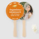 Celebra tu graduación, con este fanático de la mano - ideal para manejar en desfiles o celebraciones en el patio trasero - ¡también te quedarás genial! La parte delantera de este impresionante ventilador incluye el nombre de un graduado, clase del año, nombre de la escuela y felicitaciones ambientadas en el fondo de tu elección de color (color de la escuela) y resaltadas por una falsa tapa de grado dorado. Cambie fácilmente el color de fondo haciendo clic en el personalizar y desplácese hasta el selector de color. El reverso muestra la foto de tu graduado. Ensamblado requerido o ya seleccionado.