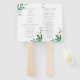 Nuestro fan del programa de bodas botánicas de moda presenta sus detalles de la ceremonia con elegantes letras en un fondo blanco crujiente, acentuadas en las esquinas por follaje botánico color agua verde, hojas y pequeñas flores blancas. Revertir muestra los miembros de la fiesta de boda con campos de texto fácilmente modificables. Coordina con nuestra colección de invitaciones a bodas de Greenhouse para elegantes bodas de invierno, nupcias elegantes de otoño o otoño, o bodas nocturnos de verano. Utilice los campos de plantilla para agregar la información de la ceremonia y de la fiesta nupcial y, a continuación, haga clic en "personalizar más adelante" para reubicar los elementos si fuera necesario.