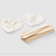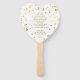 Un divertido confeti dorado manchado boda blanco hincha de la mano en forma de corazón con espacio al revés para tu fiesta de boda, un poema o orden de servicio. ¡Cualquier agradecimiento que quieras decir!