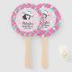 ¡Y se fue al altar! Un abanico de manos con una dama con un gorra con tu mensaje en un fondo de bloques de rayas rosadas, verdes y blancas en diagonal. Una forma divertida de mantenerse fresco y agradecer a los invitados por venir a su ducha con tema de novia Derby o cambiar la redacción y uso para una fiesta de cumpleaños o cualquier ocasión. COINCIDIENDO con los artículos de nuestra tienda.