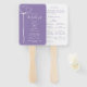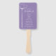 Este fan del programa, con una floral blanca y audaz sobre un fondo de lavanda, es una excelente manera de dar la bienvenida a sus huéspedes y mantenerlos frescos cuando hace buen tiempo. La parte delantera les agradece por venir. El otro lado muestra los detalles de tu ceremonia y tu fiesta de boda. Todos los campos se pueden personalizar según sus especificaciones