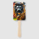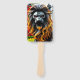Estos hinchas de mano tienen un león enojado sobre ellos.