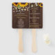Rústica y elegante ceremonia de boda programa de la plantilla de fans de la mano con flores de sol ramos y cuerdas de luces intermitentes en un fondo de madera oscura de granero.++++++ ¡Personalízalo con tus detalles! +++++++++ Adecuado para un país rústico | bodas al aire libre de verano o otoño.