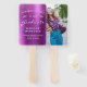 Ayude a sus invitados a mantenerse frescos durante la ceremonia o fiesta con estos fans de la mano de la graduación de fotos personalizados, con las palabras "Felicitaciones a nuestro graduado" en texto blanco sobre un fondo metalizado machacado magenta. La palabra "Graduado" aparece en un guión elegante estilo escritura a mano. Un par de gorras de tablero de mortero purpurina de imitación dorada y una dispersión de confeti dorado decoran la parte superior de la etiqueta. Personalice un lado con el nombre, la escuela y el año de graduación de su graduado. Reemplace fácilmente la imagen de ejemplo del otro lado con una foto de su graduación.
