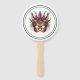 This paddle fan is shown in a festive Mardi Gras mask print.